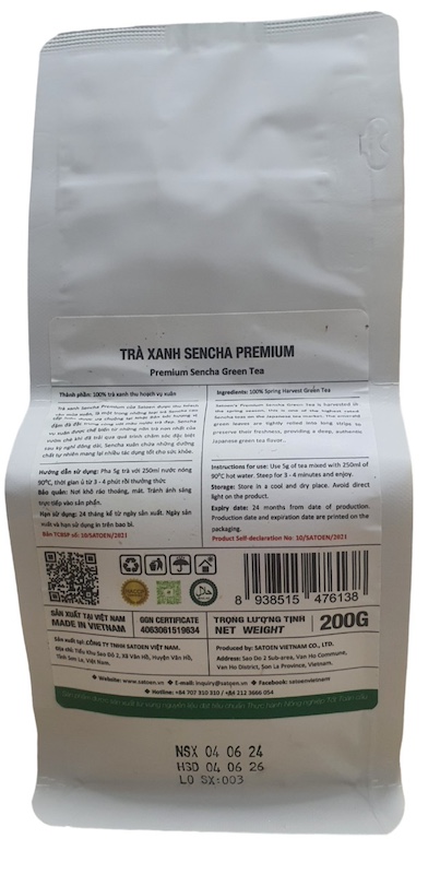 Trà xanh Sencha Premium của Satoen được sản xuất từ những lá trà cao cấp, được lựa trọn kỹ càng ở đầu mỗi vụ, là một trong những loại trà Sencha cao cấp luôn được ưa chuộng tại Nhật Bản bởi hương vị đậm đà đặc trưng cùng với màu nước trà đẹp. Sencha vụ xuân được chế biến từ những nõn trà non nhất của vườn chè khi đã trải qua quá trình chăm sóc đặc biệt sau kỳ nghỉ đông dài, Sencha xuân chứa những dưỡng chất tự nhiên mang lại nhiều tác dụng tốt cho sức khỏe.